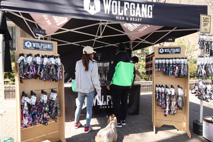 WOLFGANGの全ラインナップ(犬具、アパレル、CAP)を展示、販売いたします。