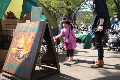 アメリカのアウトドアブランドL.L.Beanでは、アイコン商品のビーン・ブーツが車になったブーツモービルを今年も展示。