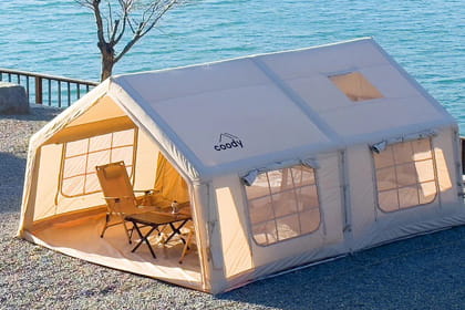 coodyのエアテントは、ポンプで空気を入れるだけの簡単設営。初心者や女性でも安心して使用できます。広々とした空間で、家族や友人とゆったり過ごせるだけでなく、設営や撤収の手間を減らし、大切な人との時間を存分に楽しめます。耐風・防水性に優れた高品質な素材を使用しており、天候に左右されずに快適なキャンプを実現。
