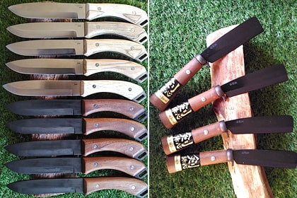 三代目【土州勝秀】が造る、本物の鍛冶職人の技が詰まった腰鉈(こしなた)と剣鉈(けんなた)の展示販売です。山仕事のプロはもちろん、地元では80歳を超えるオバチャンも使っています。