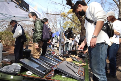なんと、鍛冶場を会場に再現!鍛冶屋が火を使って打ち刃物を作る工程を実演します。(雨天中止)