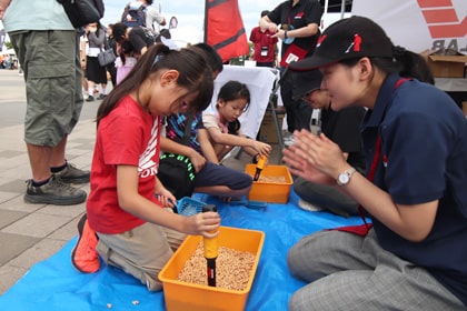 お子様から大人まで楽しめる、ビーン・ブーツを的に入れる「ブーツトスゲーム」を実施し、参加者や的に入った方にはクーポンやオリジナルグッズをプレゼント!