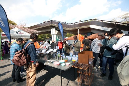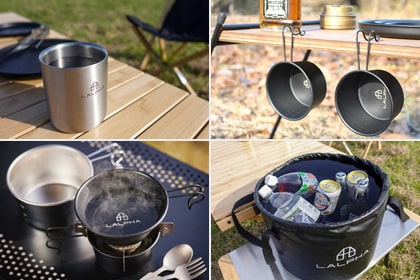 アウトドアで使える日本酒を楽しむためのギアやオリジナル酒器等も販売します。