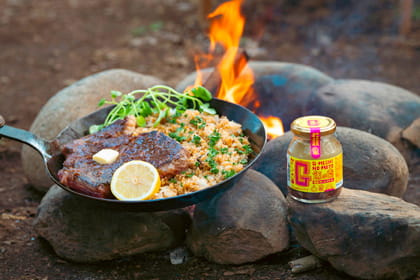 アウトドアオペラは、ヤマサ醤油の社内ベンチャーより事業化されたアウトドアな新会社です。キャンプ飯調味料「G飯の素」(ガーリックライスの素)を発売中!青空の下での美味しくも楽しい記憶づくりを演出したいと考え、にんにく農家さん、ガーリック専門レストランの協力を経て、試行錯誤しながらも、最後は自社のキャンプイベントでキャンパーの皆さまの評価を経て出来上がった自信作になります。