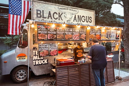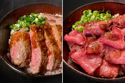 アメリカ産アンガス牛専門店「SUNDAY BEACH」!柔らかく旨味たっぷりのアンガス牛を、鉄板で一気に焼き上げるステーキとじっくりオーブンで蒸し焼きにしたローストビーフを丼ぶりでご提供いたします。