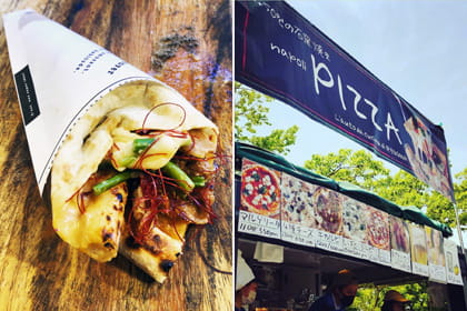 450℃〜500℃の本格石窯で焼くピッツァは、窯に入れてから焼き上がりまで約90秒で熱々をどうぞ!他店には無い食べ歩きできるワンハンドサイズのピッツァが大人気です!