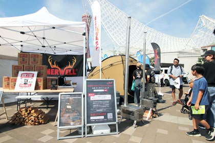 人気薪ストーブ Nomad、外気吸入型薪ストーブの新モデル Marsfire、大好評の アイロンストーブ、新焚き火台 Tornado Smokeless Fire Pit、そして初登場の Tepeeテント がブースに登場。