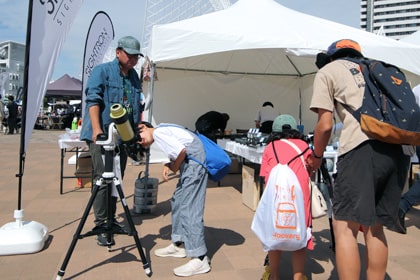 ブース前では、太陽のプロミネンスが観察できる「Hα太陽望遠鏡」をご覧いただけます。一般的な天体望遠鏡では見ることのできない、躍動する太陽の姿をぜひご覧ください。
