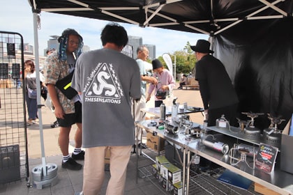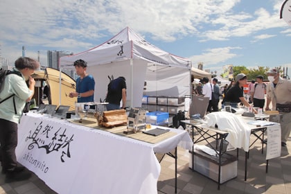 ブースでは、クッカーと酒たんぽを使った燗酒やその他おすすめ日本酒の無料試飲即売を行います。