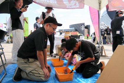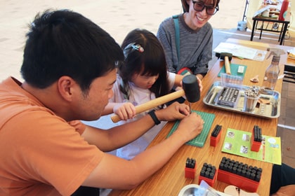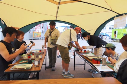 キャンプシーンをイメージしたブースで、レザークラフトを開催!