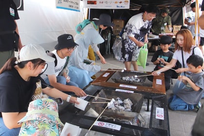 参加者が炭火で炙ったマシュマロをクラッカーに挟んでスモアを作り、その場でお食べいただけます。